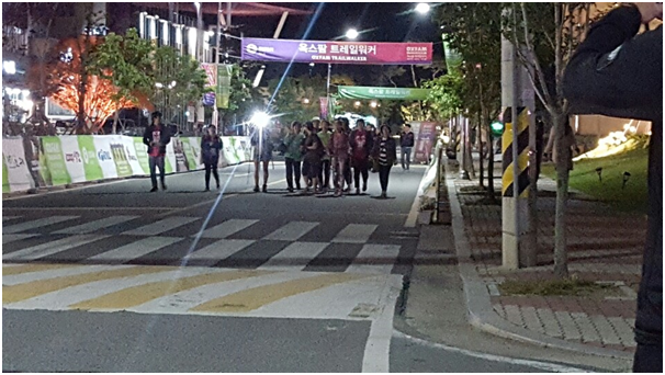 내가 참가하자고 바람은 다 잡아 놓고, 이렇게 또 먼저 보내는구나, 하는 죄책감과 그래도 완주하겠다고 가는구나, 하는 자책감을 가지고 무거운 마음으로 발걸음을 옮겼다. 갈 거라면 빨리 출발하기 바랬던 상웅이가 재빠르게 길을 찾아 어두운 산길을 안내했다. 이미 우리가 거의 마지막인 것 같았다. 산길을 내려가자 사람들이 모여 있고 관계자가 상황을 설명했다.